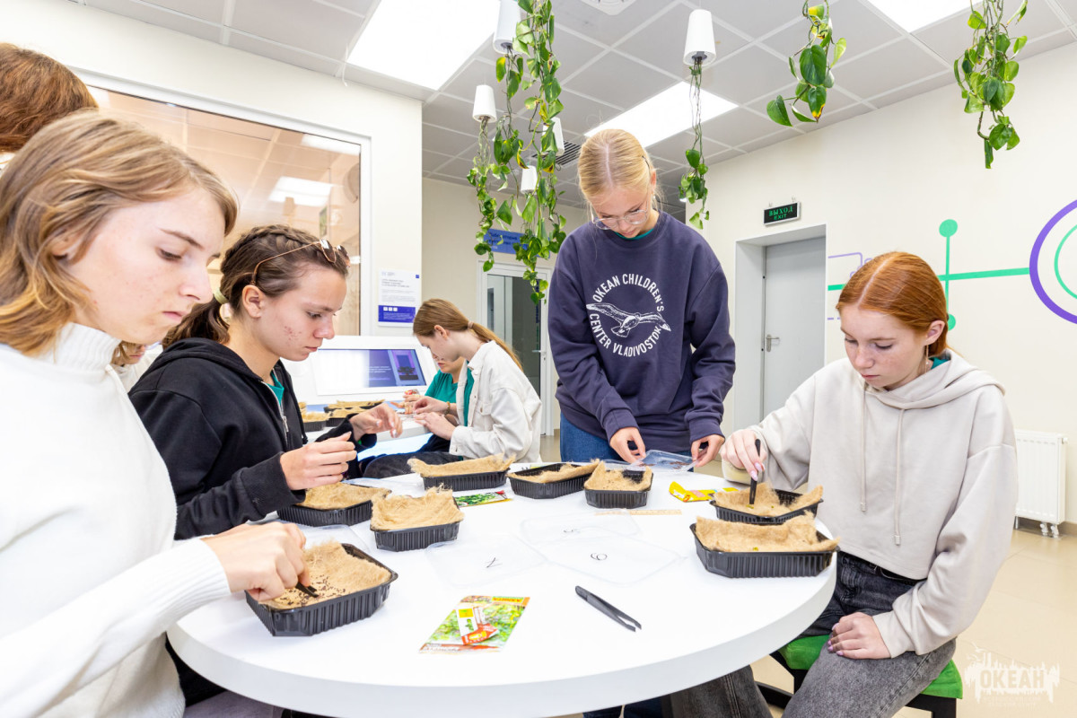 В течение всей смены юные исследователи погружались в передовые научные направления – биомедицину и биотехнологии. Работа над проектами шла непрерывно. Занятия проходили как в «Океане», так и в современных научных лабораториях ДВФУ, куда океанцы выезжали на практические занятия. Под руководством студентов, аспирантов и преподавателей университета они осваивали сложные методики и ставили реальные эксперименты.