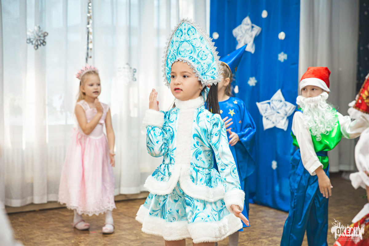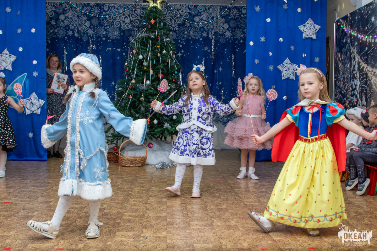 Елена Абольянина, музыкальный руководитель детского сада ВДЦ «Океан», подчеркнула особенности организации праздников для разных возрастных групп: «Для маленьких детишек ясельных и младших групп утренники проходят без участия родителей, поскольку малыши пока очень нежные и ранимые. Тем не менее, атмосфера праздника наполняла всю группу: гости-звёзды — Снегурочка и Лисичка — пришли к ребятам, устроив настоящие музыкальные игры, песенное представление и даже танец.